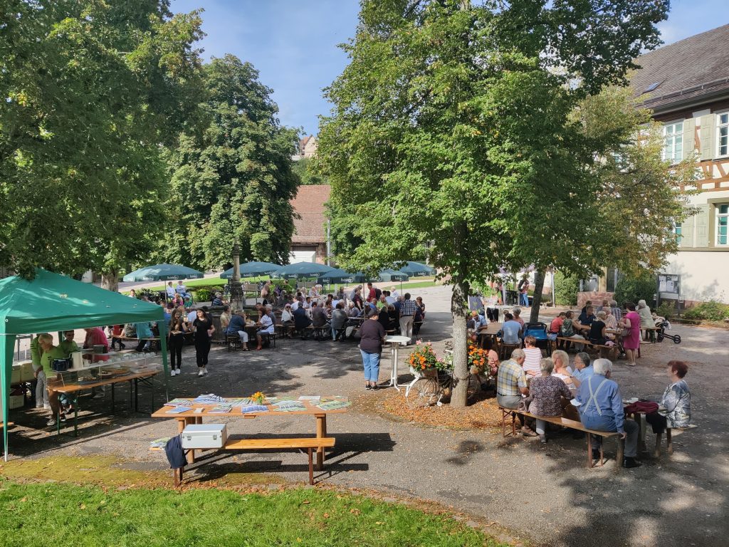 Endlich konnte der Schwarzwaldverein Wildberg wieder ein „Festle“ ausrichten. Bei strahlend schönem Herbstwetter bot sich der Klosterhof, rund um den Brunnen, als Kulisse gebührend an. Schon kurz nach dem Aufbau standen die Gäste an, um sich mit einer roten Wurst oder Steak, frisch vom Grill, zu stärken. Bei Kaffee und Kuchen sowie diversen Getränken genossen auch viele Radfahrer und Besucher des Museums dieses schöne Ambiente.