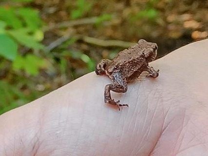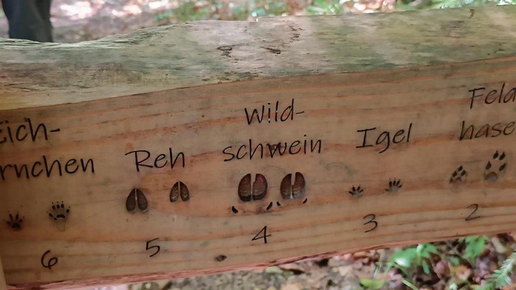Verschiedene Tafeln klären über Tierfußspuren und Natur auf. Sogar ein kleines Fröschlein wurde entdeckt.