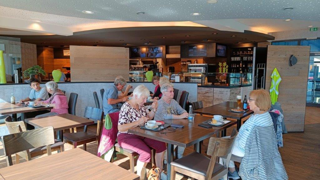 Der Rundweg betrug für uns etwas über 2 km bei bestem Wetter. Keiner ging „verschollen“ oder wurde einbehalten! Unsere Einkehr im Café Ziegler rundete den Nachmittag mit leckeren Sachen ab.