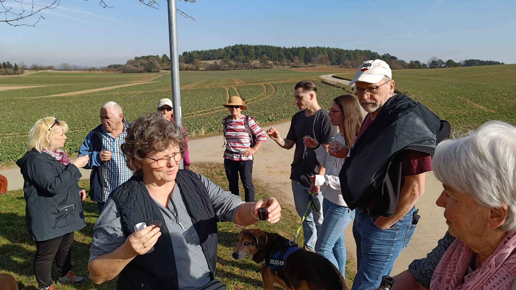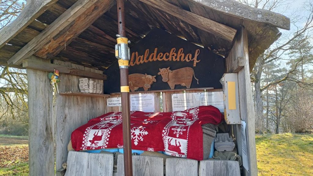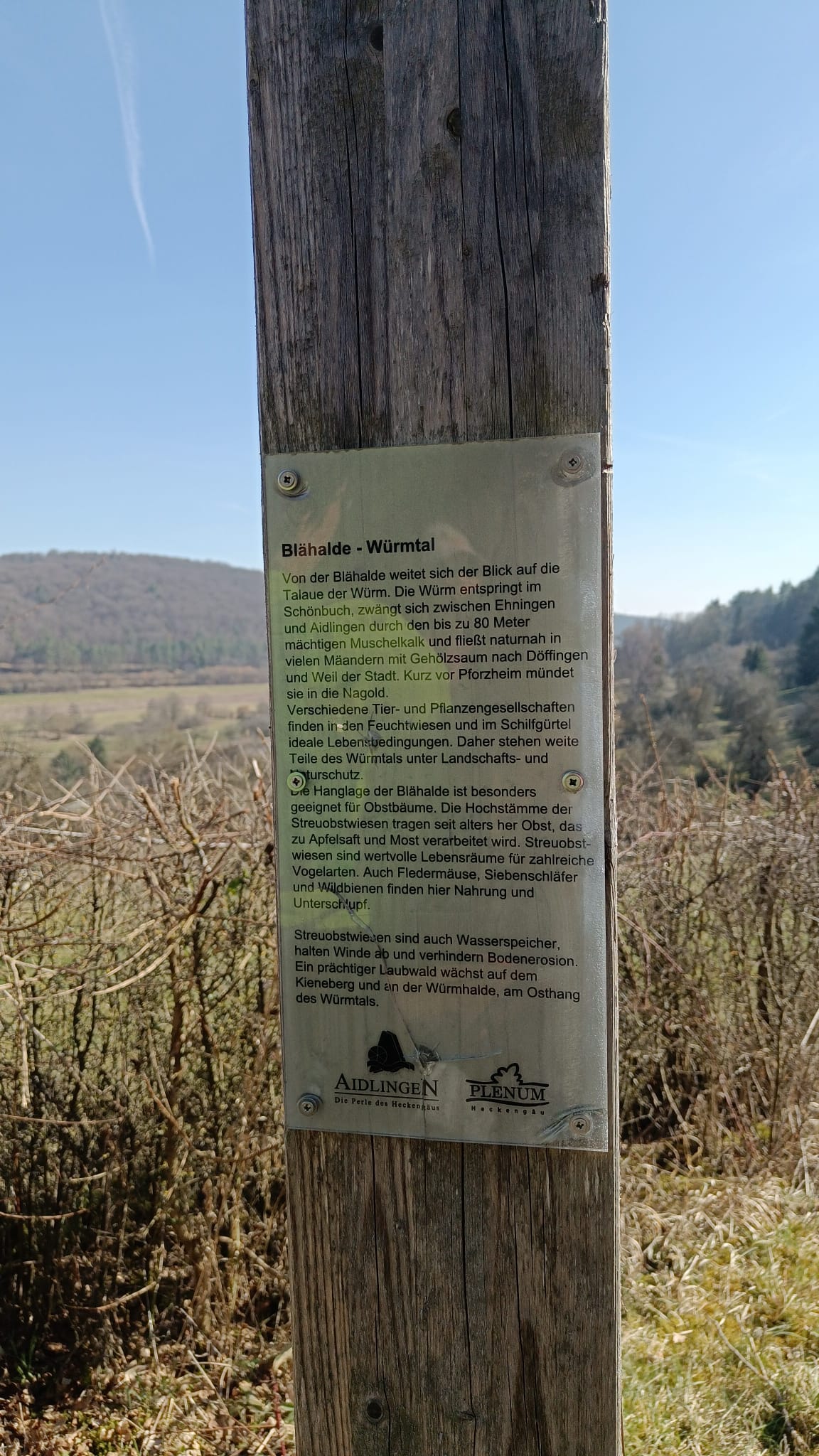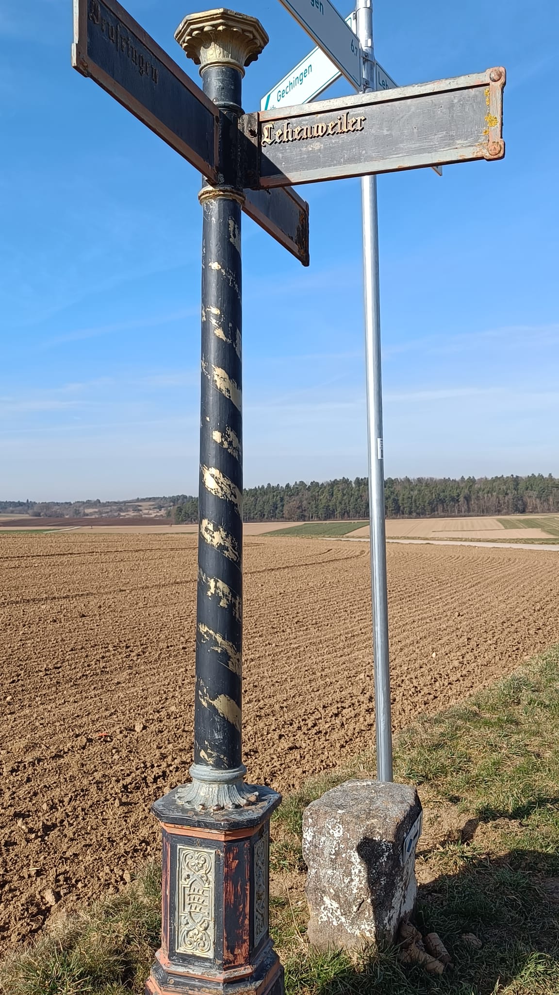 Weiter ging es vorbei an einem alten historischen Wegweiser aus dem königlichen Württemberg, aufgestellt so zwischen 1806 und 1918. Die Feldschutzhütte lud zu einer kleinen Rast mit „geistiger Nahrung“ ein.