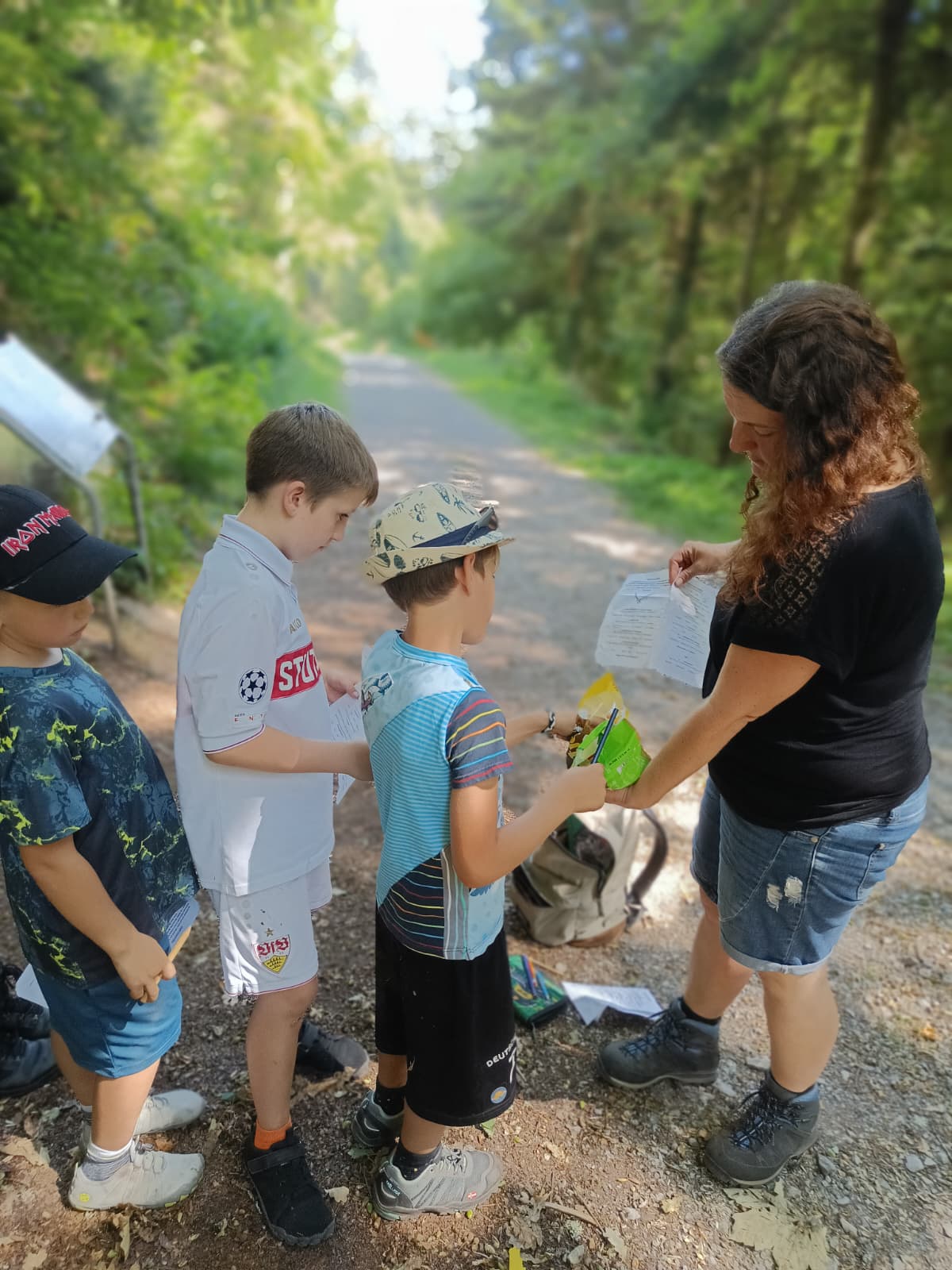 Sie hatte zehn Fragen betreffend den Tafeln auf dem Pfad ausgearbeitet. Mit Feuereifer waren die Kinder dabei denn es gab kleine Preise zu gewinnen. Anschließend ging es noch zum Minigolf spielen und Eis essen oder was trinken.