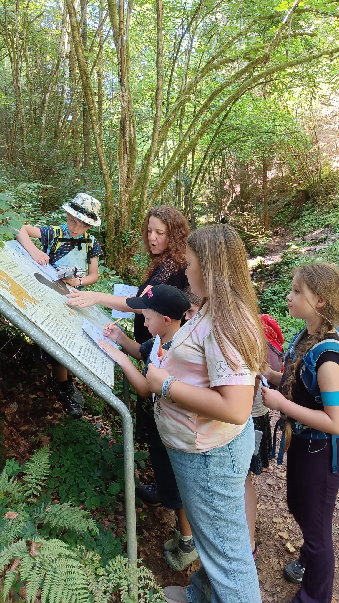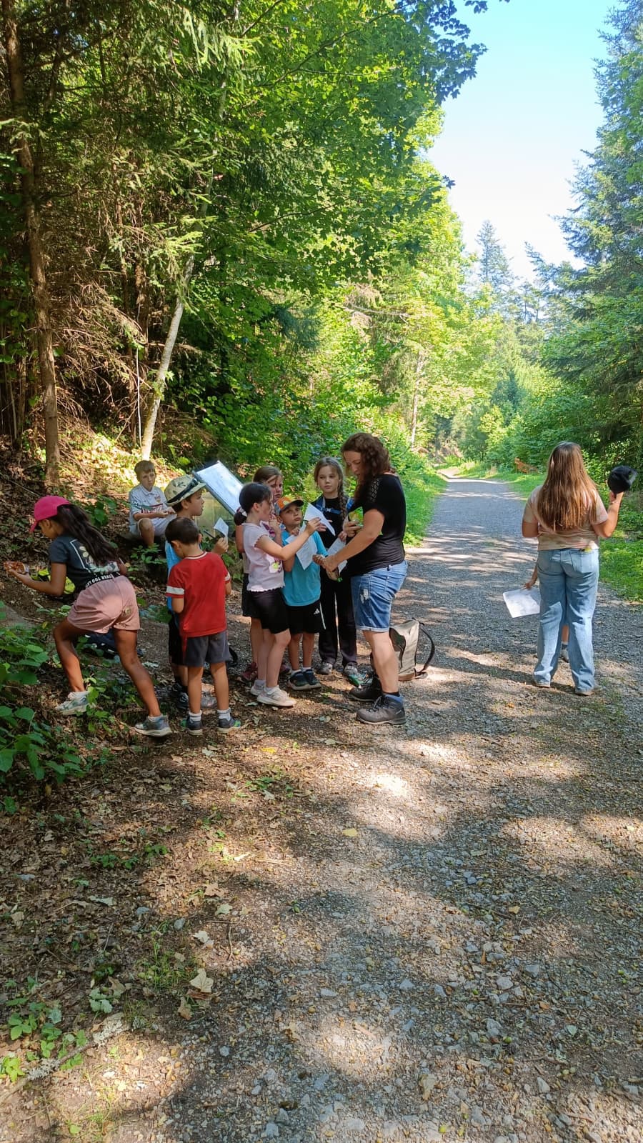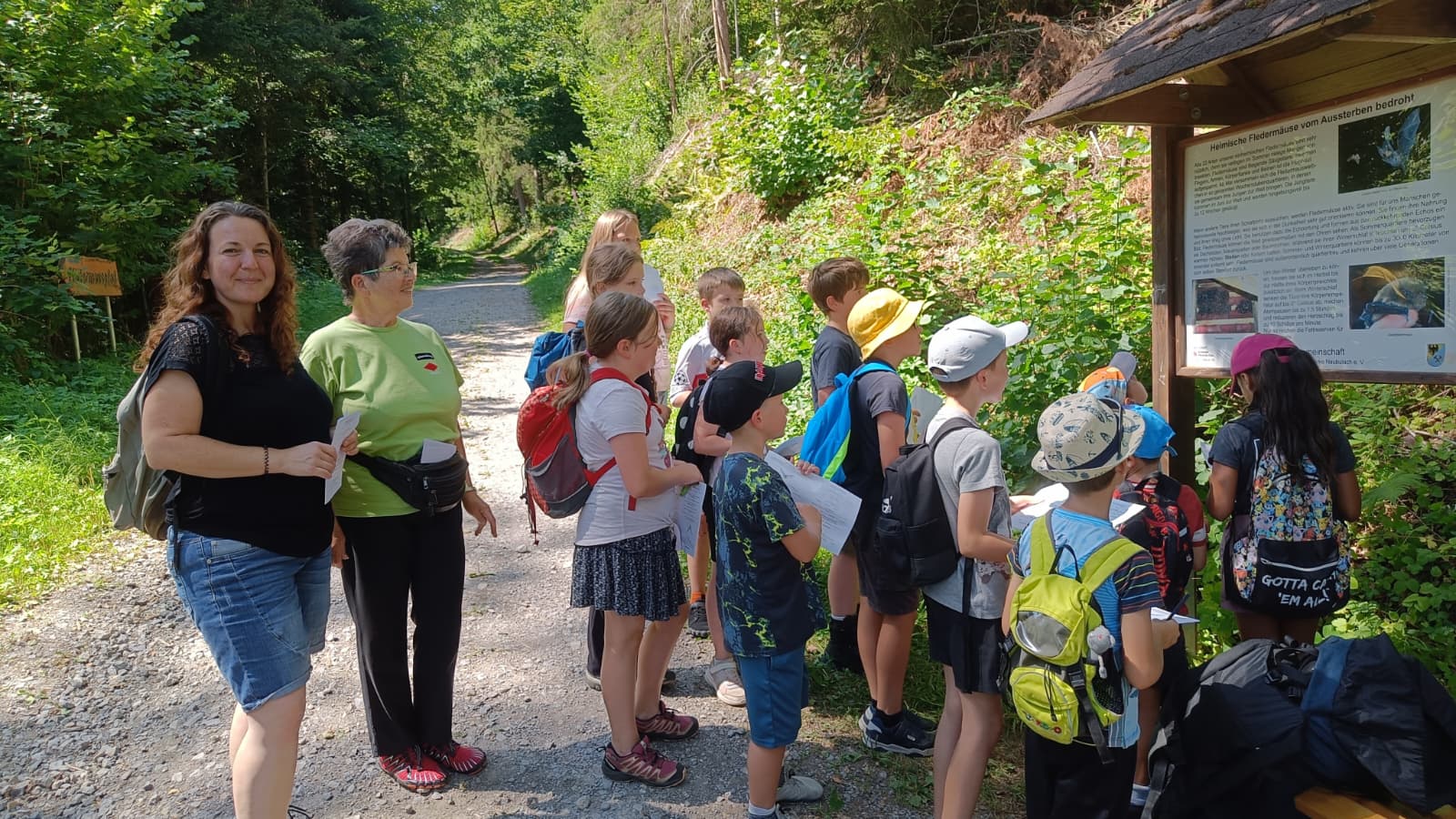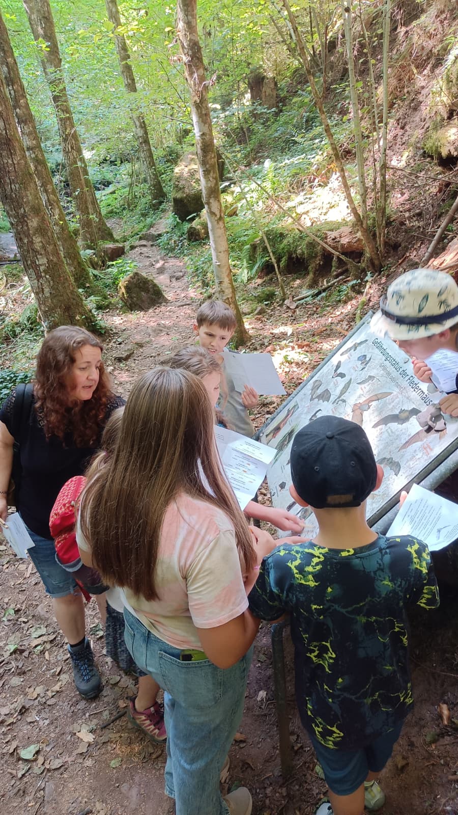 Sommerferienprogramm mit dem Schwarzwaldverein Wildberg. Mit 13 Kindern startete Alexandra Gitto gewappnet mit Hausaufgabenzettel durch den Fledermauspfad in Neubulach.