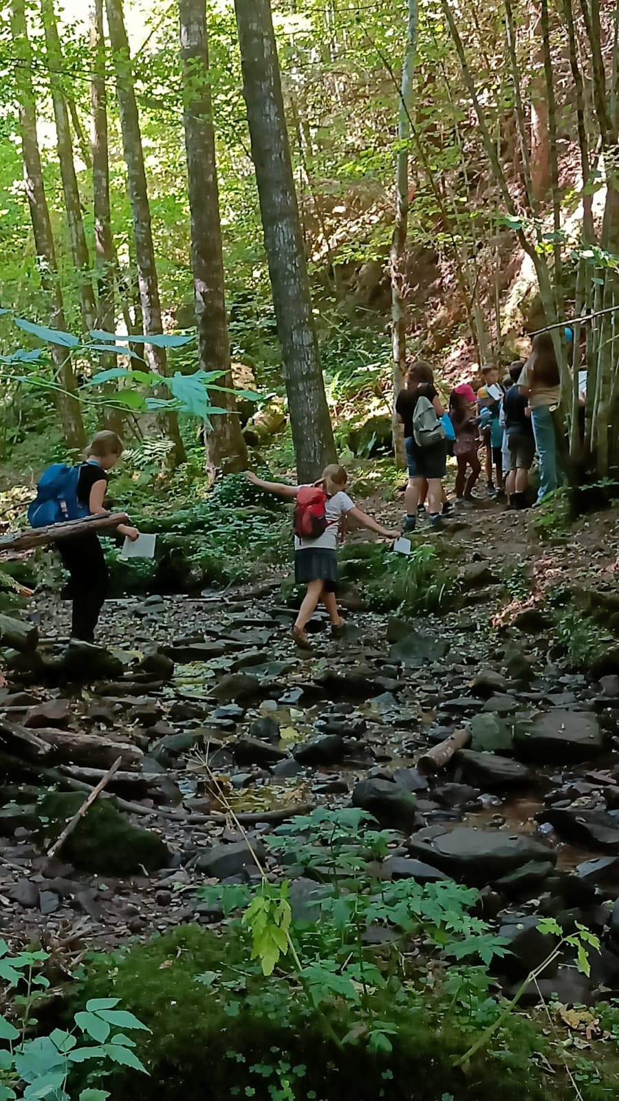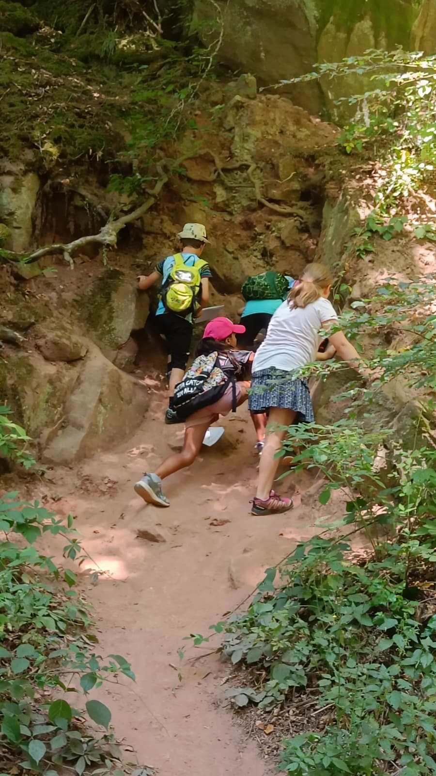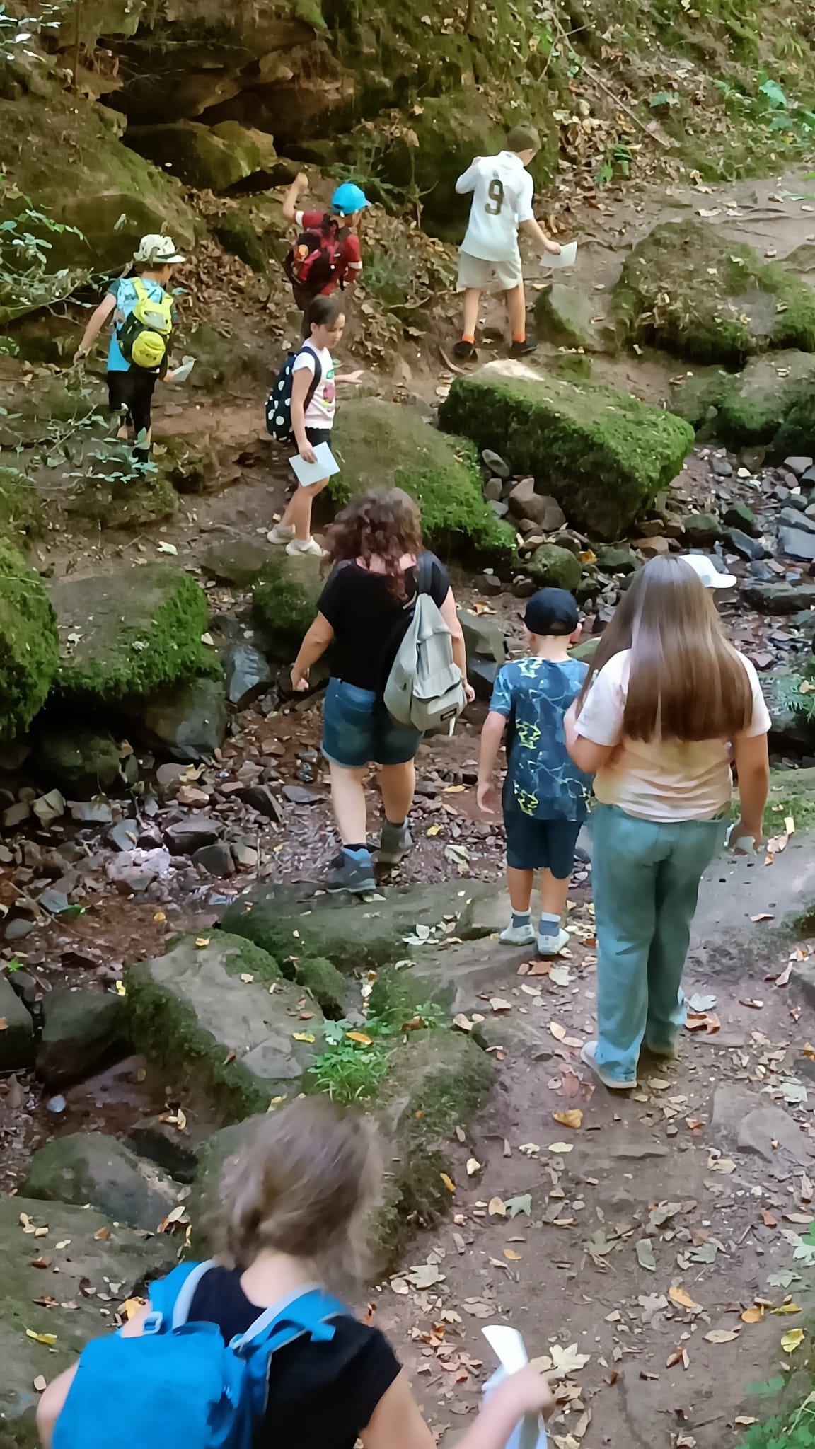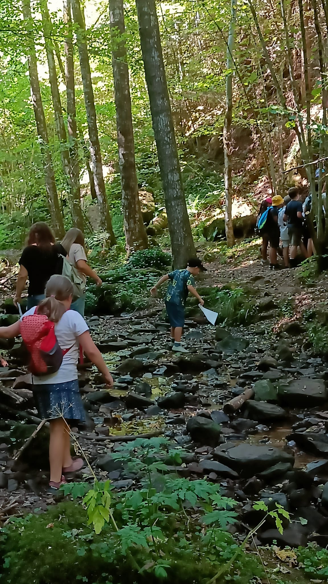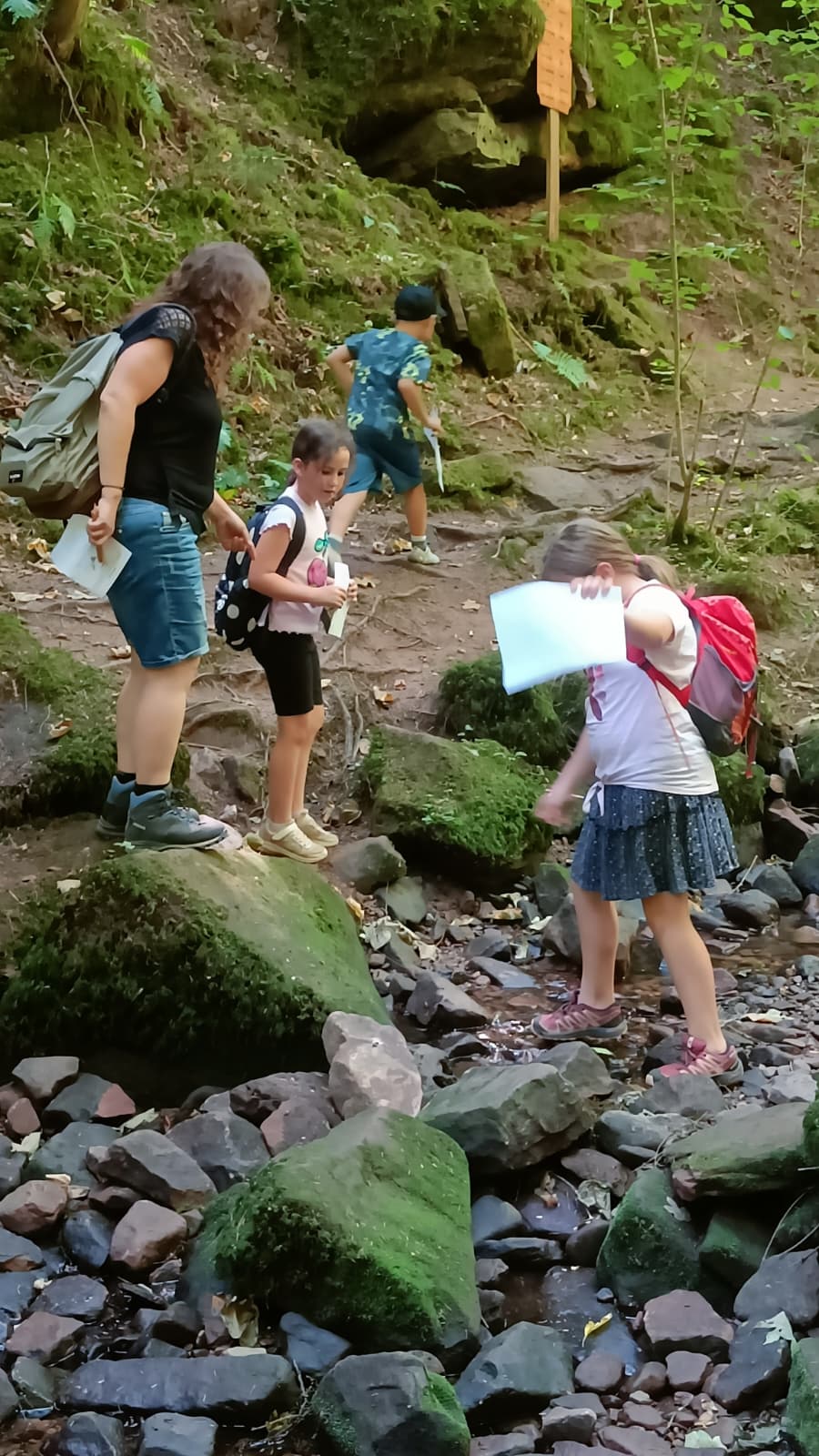 Sommerferienprogramm mit dem Schwarzwaldverein Wildberg. Mit 13 Kindern startete Alexandra Gitto gewappnet mit Hausaufgabenzettel durch den Fledermauspfad in Neubulach.