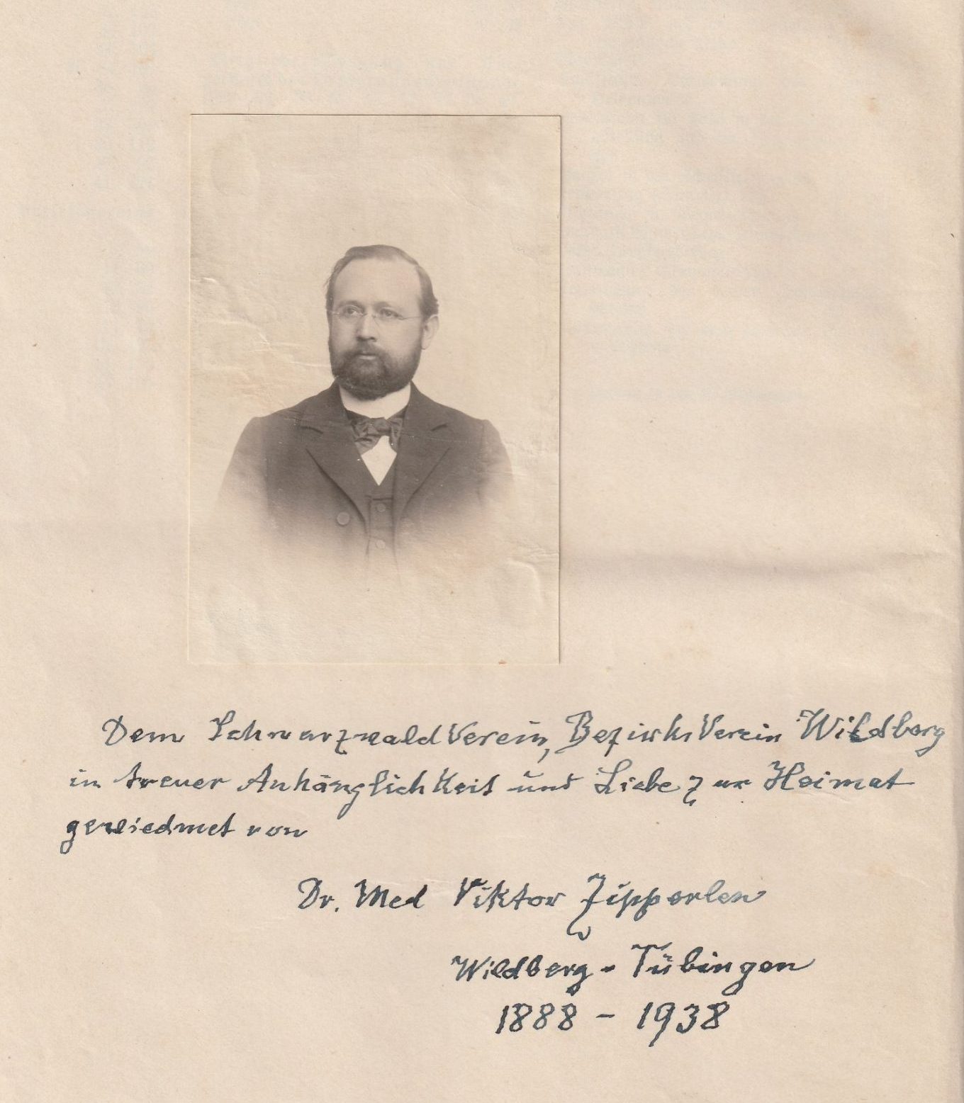 Die bisherigen Vorgänge dürfen nicht so aufgefasst werden, als ob in Wildberg in dieser Hinsicht nichts geschehen wäre. Im Gegenteil, es wurden schon seit sieben Monaten Vorbesprechungen in Wildberg und mit den leitenden Persönlichkeiten des Hauptvereins von Dr. Zipperlen geführt. Stadtschultheiss Mutschler, Forstmeister Hopfengärtner, Oberförster Metzger, Brunner Sattler Simon [–] waren der Sache zugetan. Andere warnten vor der Gründung eines neuen Vereins, man habe solcher mehr als genug etc. Bisher hatte man in Wildberg einen Verschönerungsverein, d. Verkehrsverein, der ein recht bescheidenes Dasein führte. Bei der im Jahre einmal stattfindenden Haussammlung mögen 12 – 20 Mark eingegangen sein. Damit konnte man nicht viele Bänke aufstellen. Auch bekam man wohl zu hören: „Die sollet zahle, wo spaziergehet, i ka net spaziere gehe, i han koi Zeit derzue“.